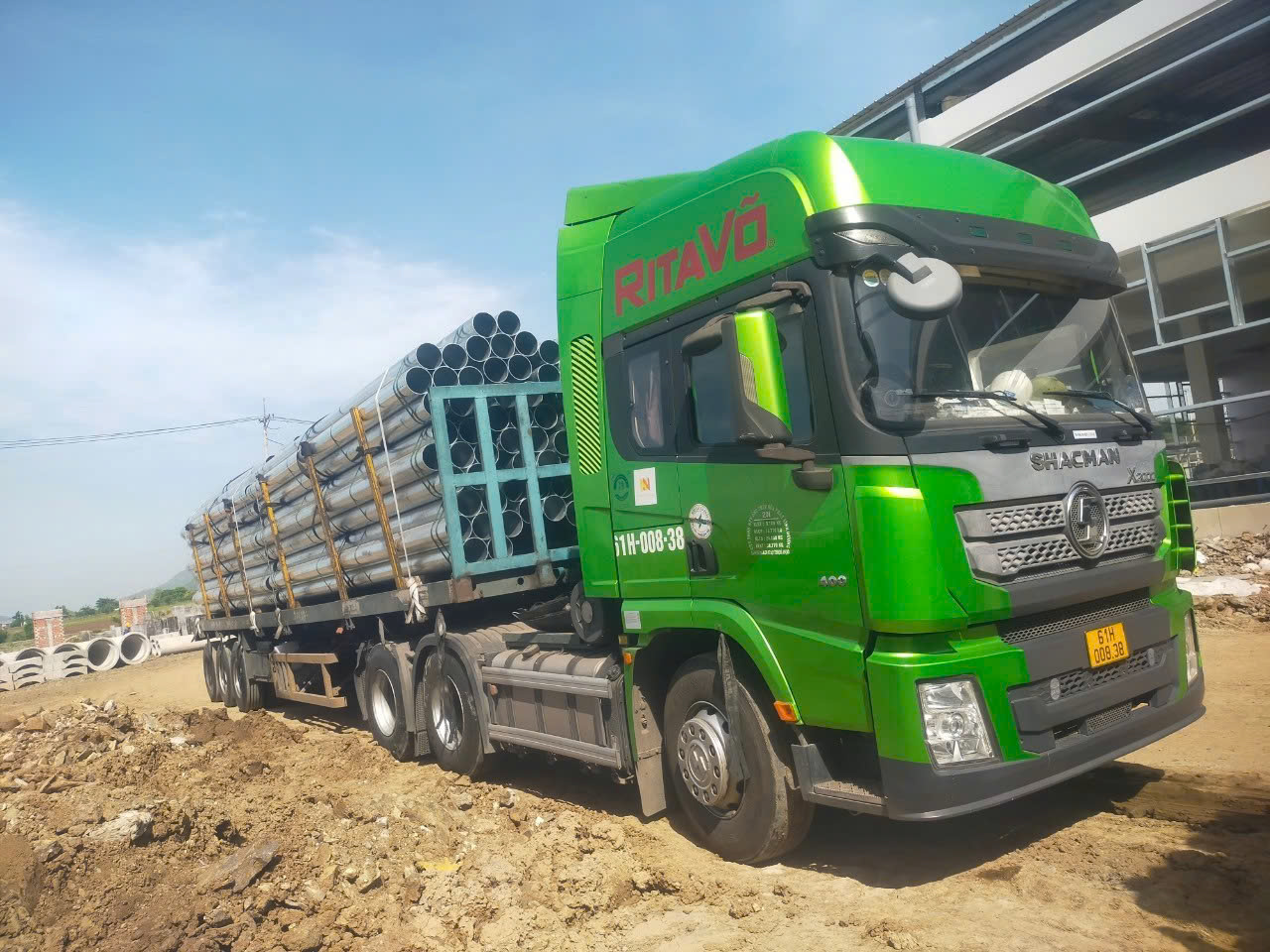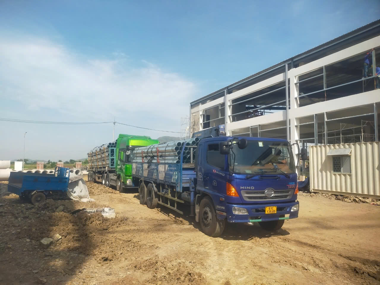 - Tổng trọng lượng: hơn 180 tấn thép ống nhúng kẽm (ống nhúng kẽm phi 90*2.9li; ống nhúng kẽm phi 90*3.2li; ống nhúng kẽm phi 141*5.16li; ống nhúng kẽm phi 141*6.35li; ống nhúng kẽm phi 168*3.96li; ống nhúng kẽm phi 219*6.35li;...)
